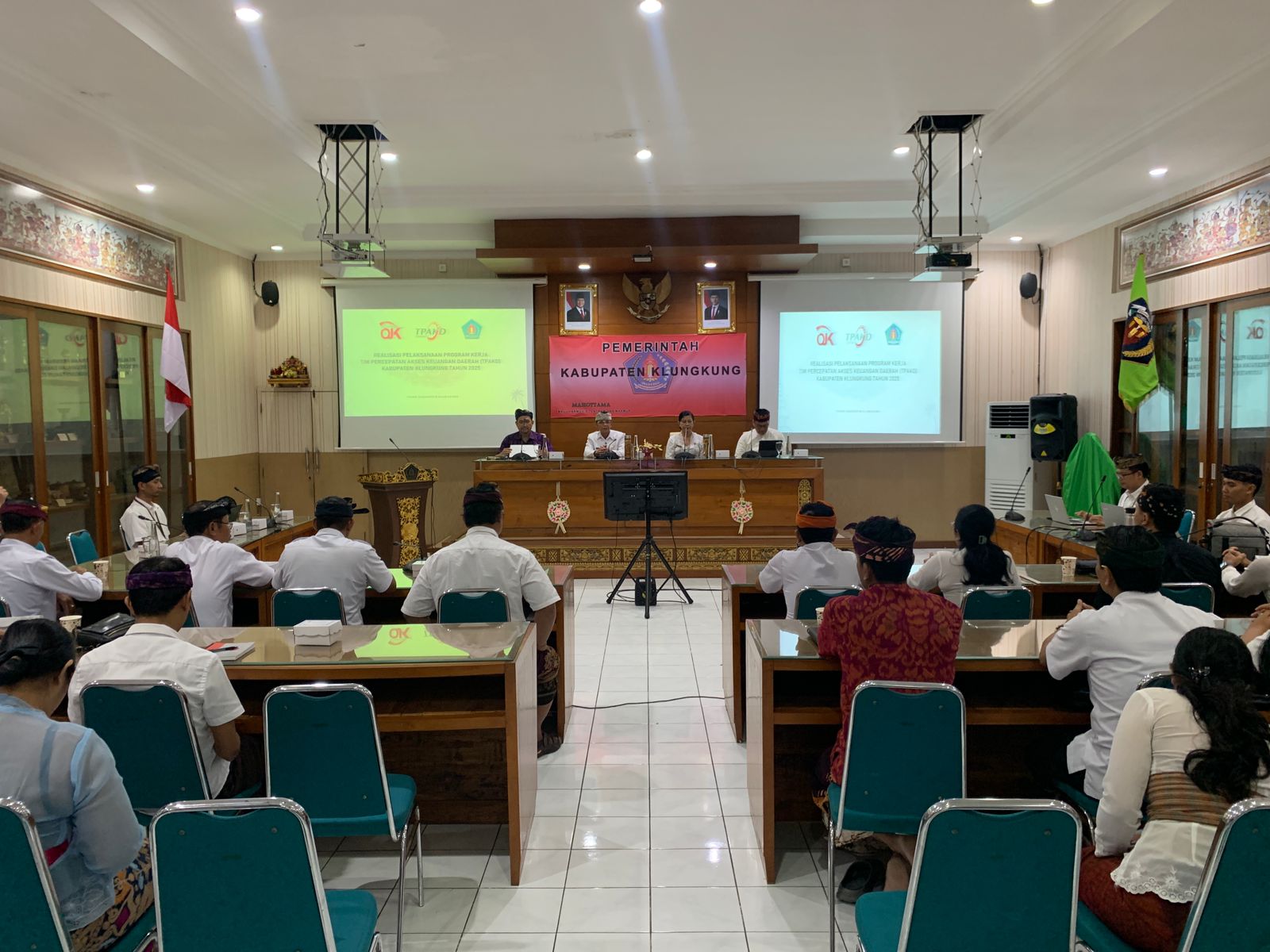 Evaluasi kinerja Tim Percepatan Akses Keuangan Daerah (TPAKD) Kabupaten Klungkung dilaksanakan di Ruang Praja Mandala Kantor Bupati Klungkung pada Kamis, 14 Agustus 2025. Hadir pada kesempatan itu Bupati Klungkung I Made Satria, Perwakilan Bank Indonesia, Otoritas Jasa Keuangan, Asisten Perekonomian dan Pembangunan Setda Kabupaten Klungkung, Operasi Perangkat Daerah dan sejumlah undangan lainnya.