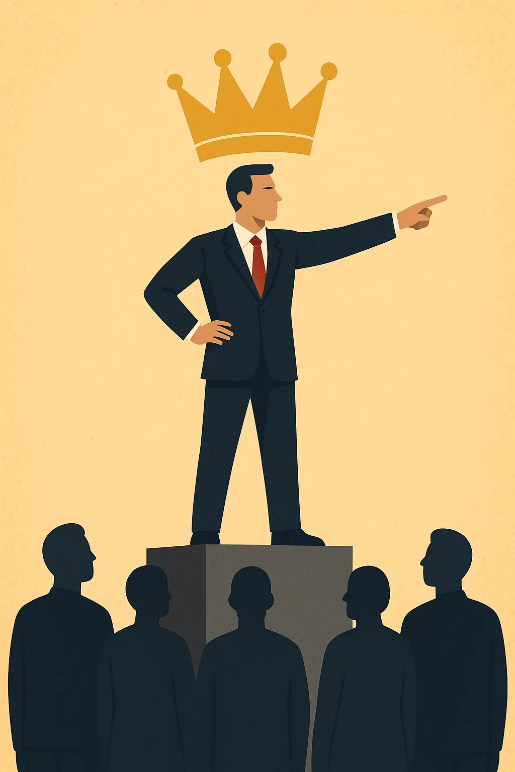 Pemimpin macam ini percaya bahwa karena memegang kekuasaan, otomatis tindakannya adalah demi rakyat. Padahal kekuasaan hanya memberi alat, bukan jaminan kebaikan. Seolah tanpa dirinya, organisasi atau negara tidak bisa jalan.
