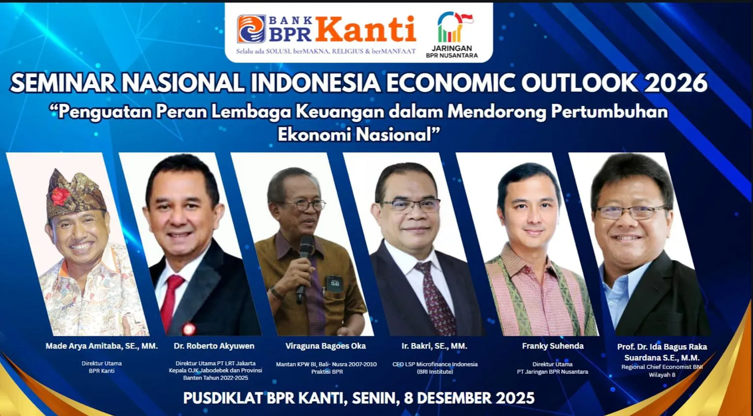 Gianyar— Senin 8 Desember 2025 BPR Sukawati Pancakanti menyelenggarakan Seminar Nasional Economic Outlook 2026 bertempat di Pusdiklat BPR Kanti, jalan Pudak Batubulan Gianyar dengan tema “Penguatan Peran Lembaga Keuangan dalam mendorong Pertumbuhan Ekonomi Nasional”