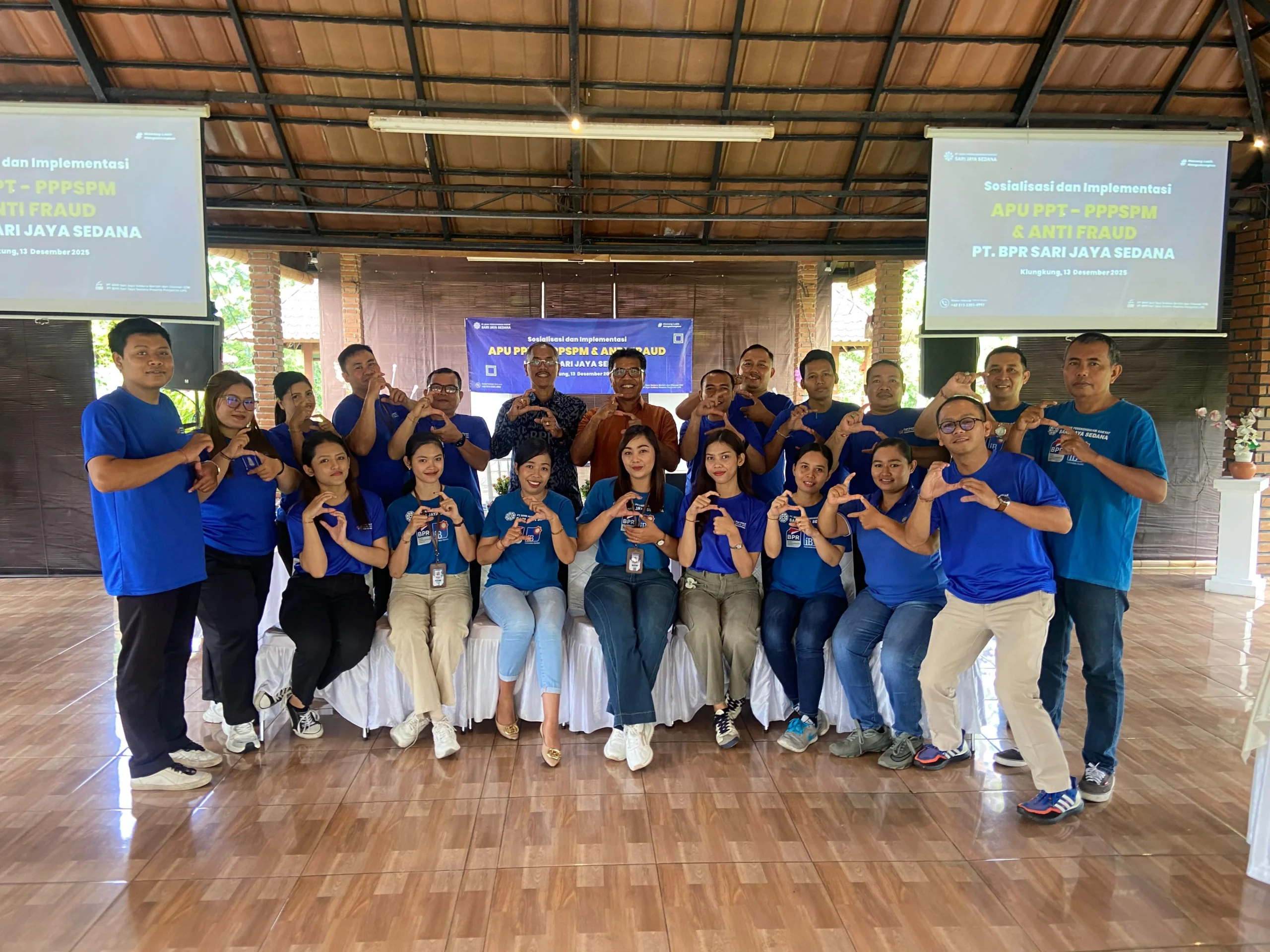 Klungkung — BPR Sari Jaya Sedana menggelar pelatihan internal bertema Sosialisasi dan Implementasi Penerapan Strategi Anti Fraud, APU PPT, dan PPPSPM pada Sabtu, 13 Desember 2025, di Kenyeri Garden & Shala, Semarapura Kauh, Klungkung.