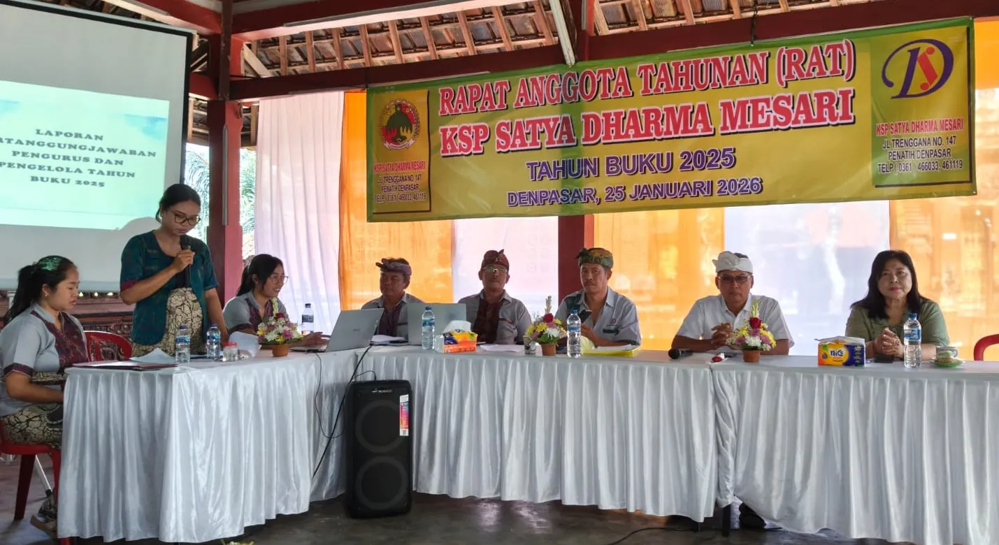 Denpasar — Koperasi Simpan Pinjam (KSP) Satya Dharma Mesari menggelar Rapat Anggota Tahunan (RAT) pada Minggu, 25 Januari 2026, bertempat di Wantilan Pura Dalem, Banjar Pelagan, Jalan Trenggana, Denpasar.