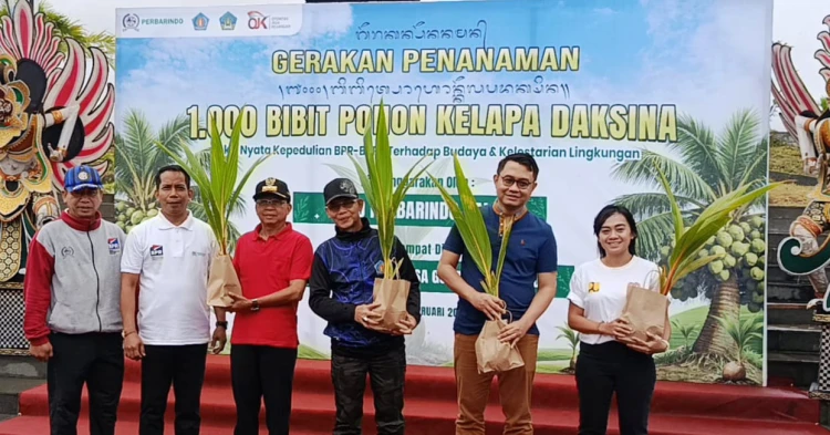 Komitmen pelestarian budaya dan lingkungan kembali digaungkan melalui gerakan penanaman 1.000 bibit kelapa daksina yang digelar oleh Perhimpunan Bank Perekonomian Rakyat Indonesia (Perbarindo) Bali bersama BPR dan BPRS se-Bali di kawasan Embung Tukad Unda, Kabupaten Klungkung, Jumat (27/2/2026).